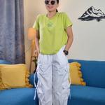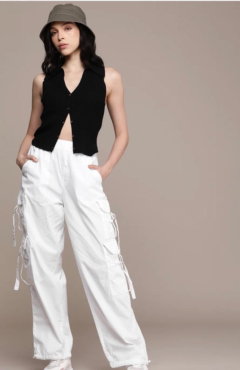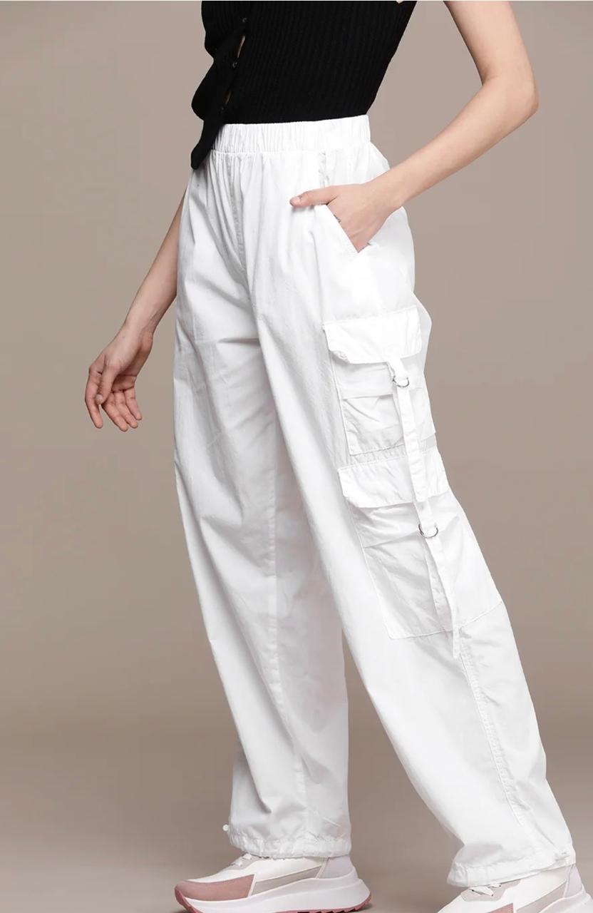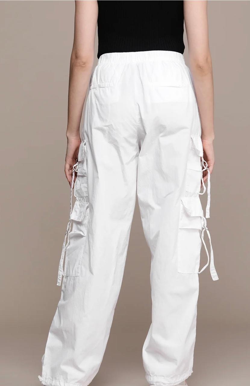 These white cargo pants are a perfect mix of style and comfort. The fabric feels breathable yet structured, making them ideal for both casual outings and elevated streetwear looks. The multiple pockets add utility without making them look bulky, and the crisp white shade gives a fresh, chic vibe that pairs well with almost any top—crop tees, oversized shirts, or even fitted blouses.