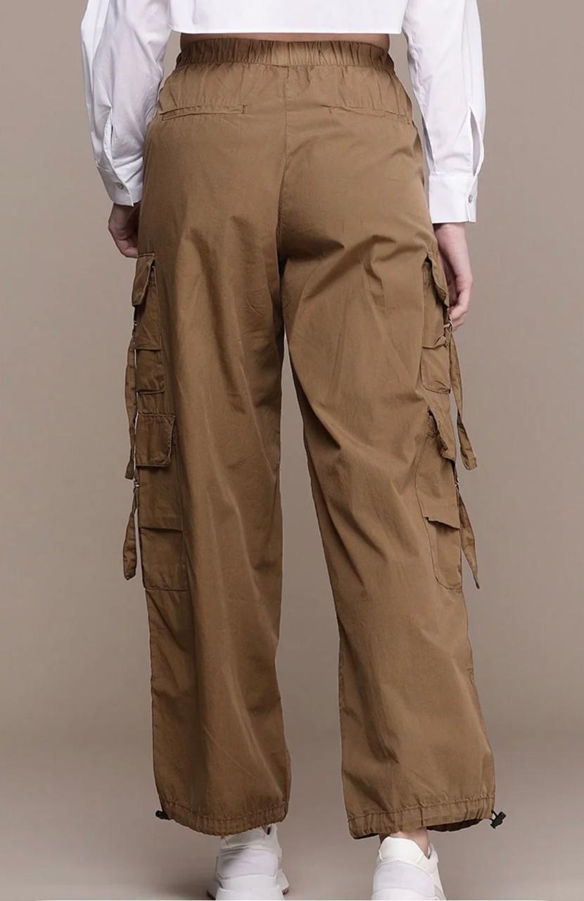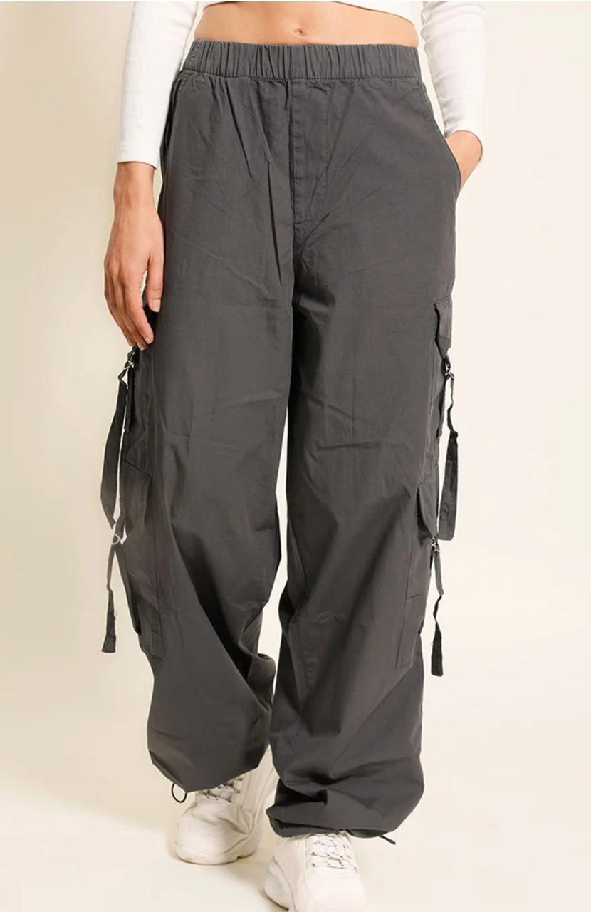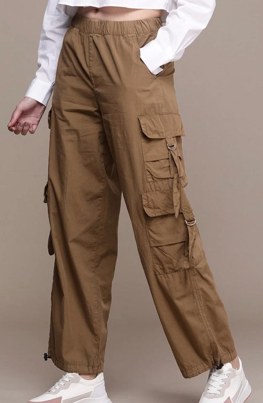 Featuring a high-rise waist and a relaxed parachute fit, these women’s cargo pants offer a flattering silhouette while allowing easy movement. The utility-inspired cargo pockets add both style and functionality, making them ideal for casual outings, travel, college wear, and weekend looks.
